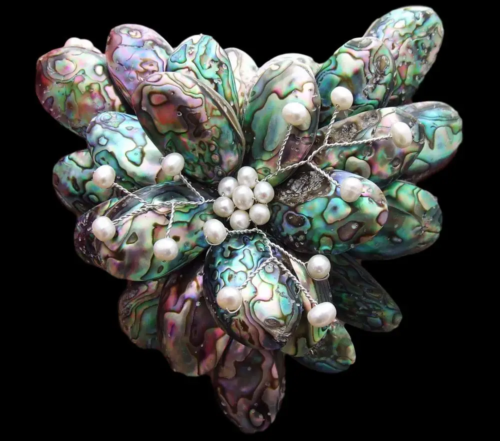 Gems Info:Fresh water cultured pearl, round white pearl, fancy green abalone shell, good quality, high luster!