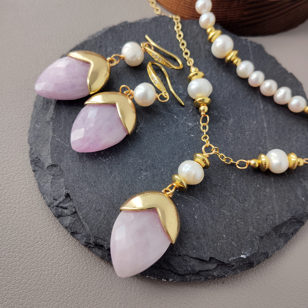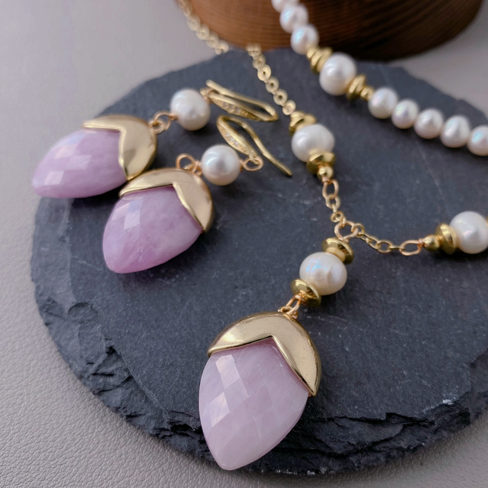 Diameter: 5-6mm(pearl), 17x24mm(kunzite charm)
