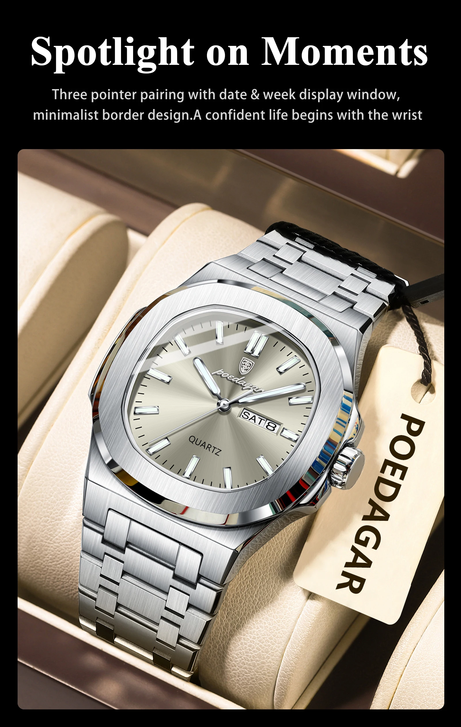Original Fashion Men's Watches Waterproof Luminous Date Week Men Watch Stainless Steel Business Luxury Quartz Man Watch