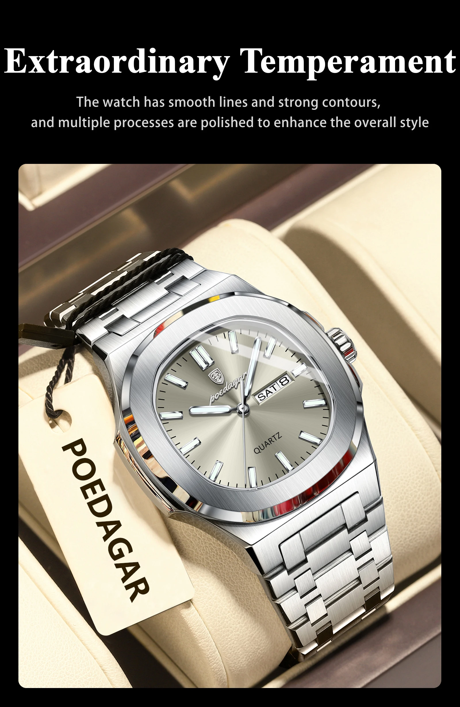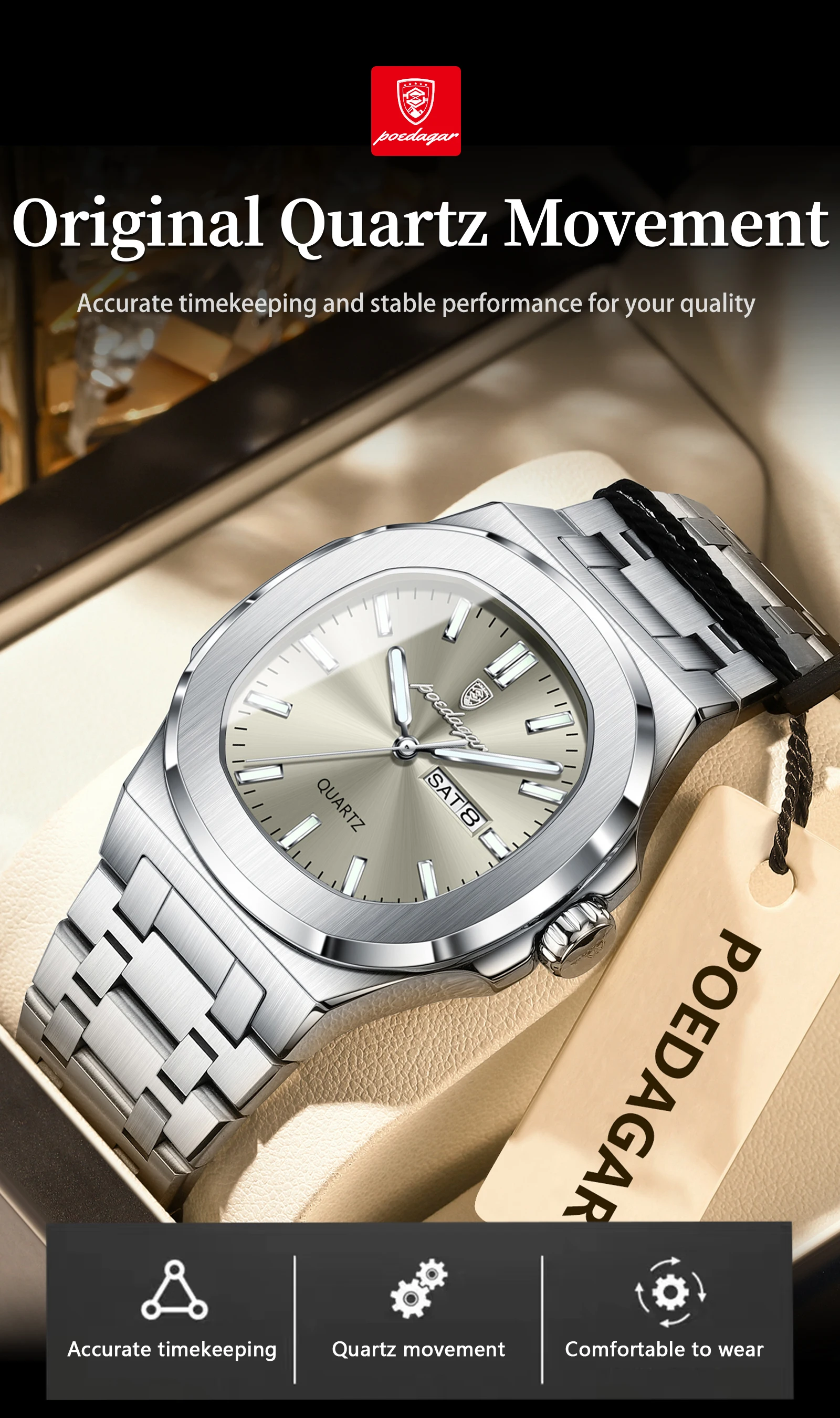 • Original Fashion Men's Watches Waterproof Luminous Date Week Men Watch Stainless Steel Business Luxury Quartz Man Watch