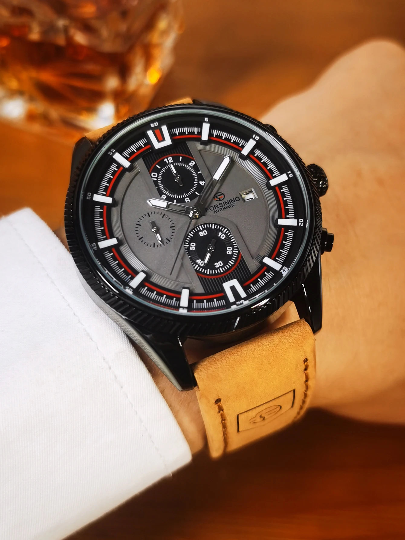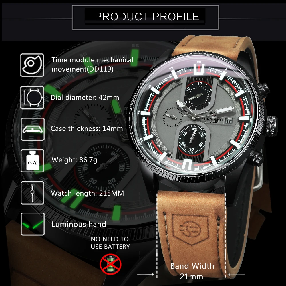 • Forsining Fashion Business Mechanical Watch for Men Luminous Hands Leather Strap Sports Automatic Mens Watches Top Brand Gifts